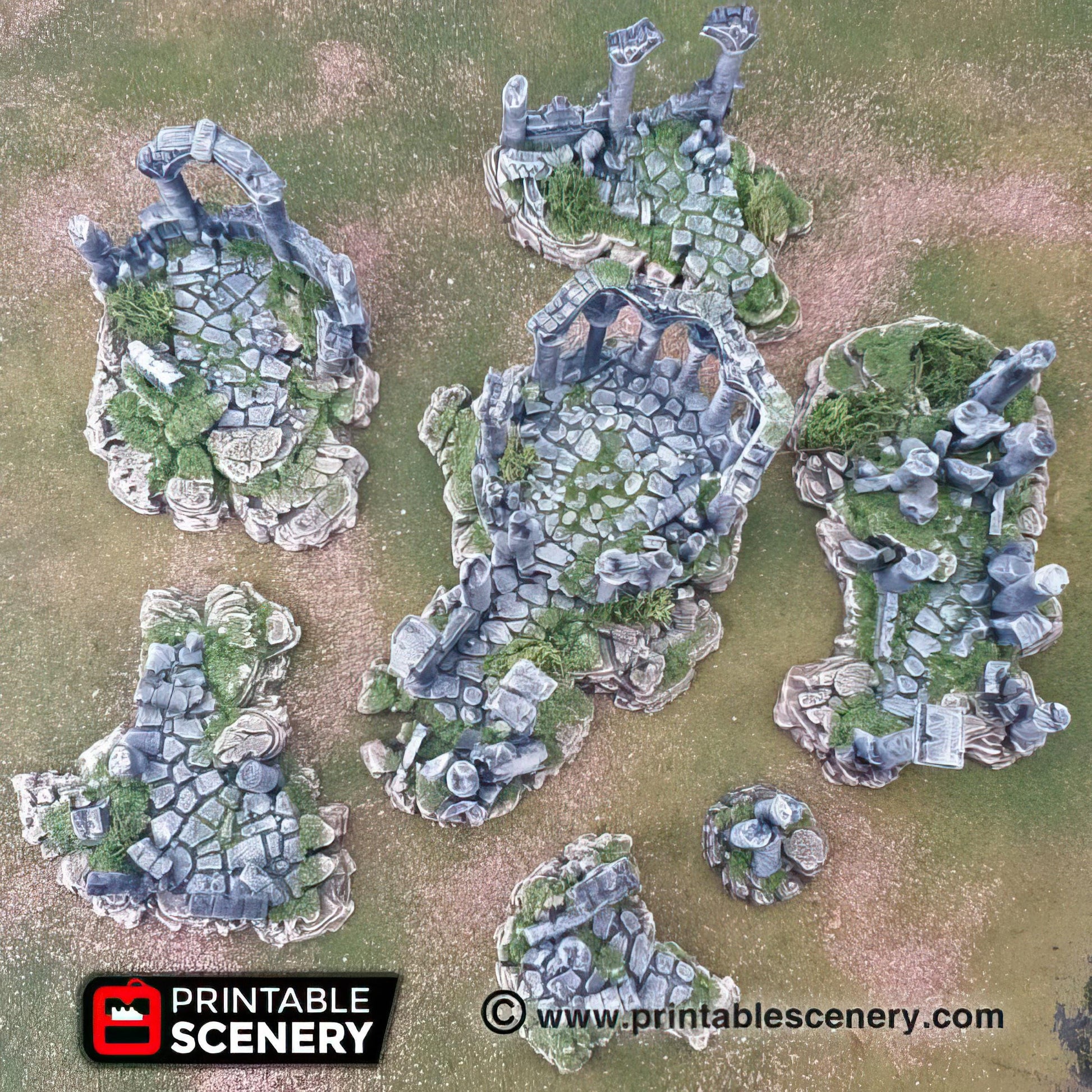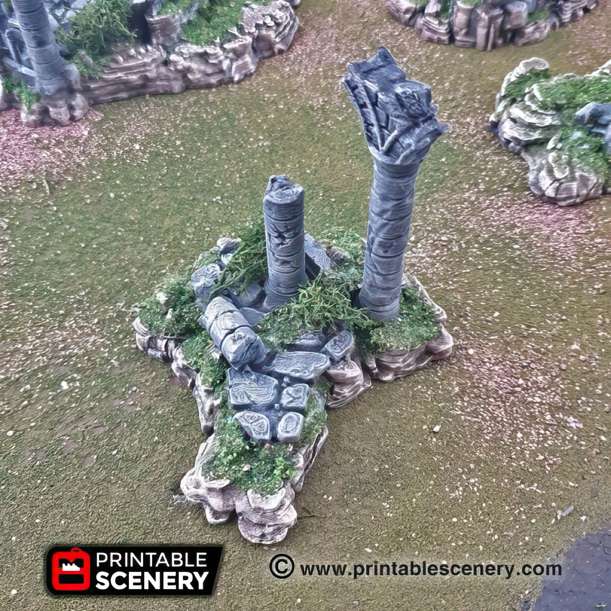 Create an ancient, mysterious atmosphere in your tabletop games with this 7-piece Ruins set! Each piece is meticulously crafted to represent weathered stone structures, crumbling walls, and scattered debris, perfect for adding depth to your RPGs, wargames, or dioramas. These versatile terrain pieces can be arranged in countless ways to depict forgotten temples, old fortresses, or desolate battlefields. Bring your campaign settings to life with this detailed Ruins set, adding history and intrigue to your adventures.