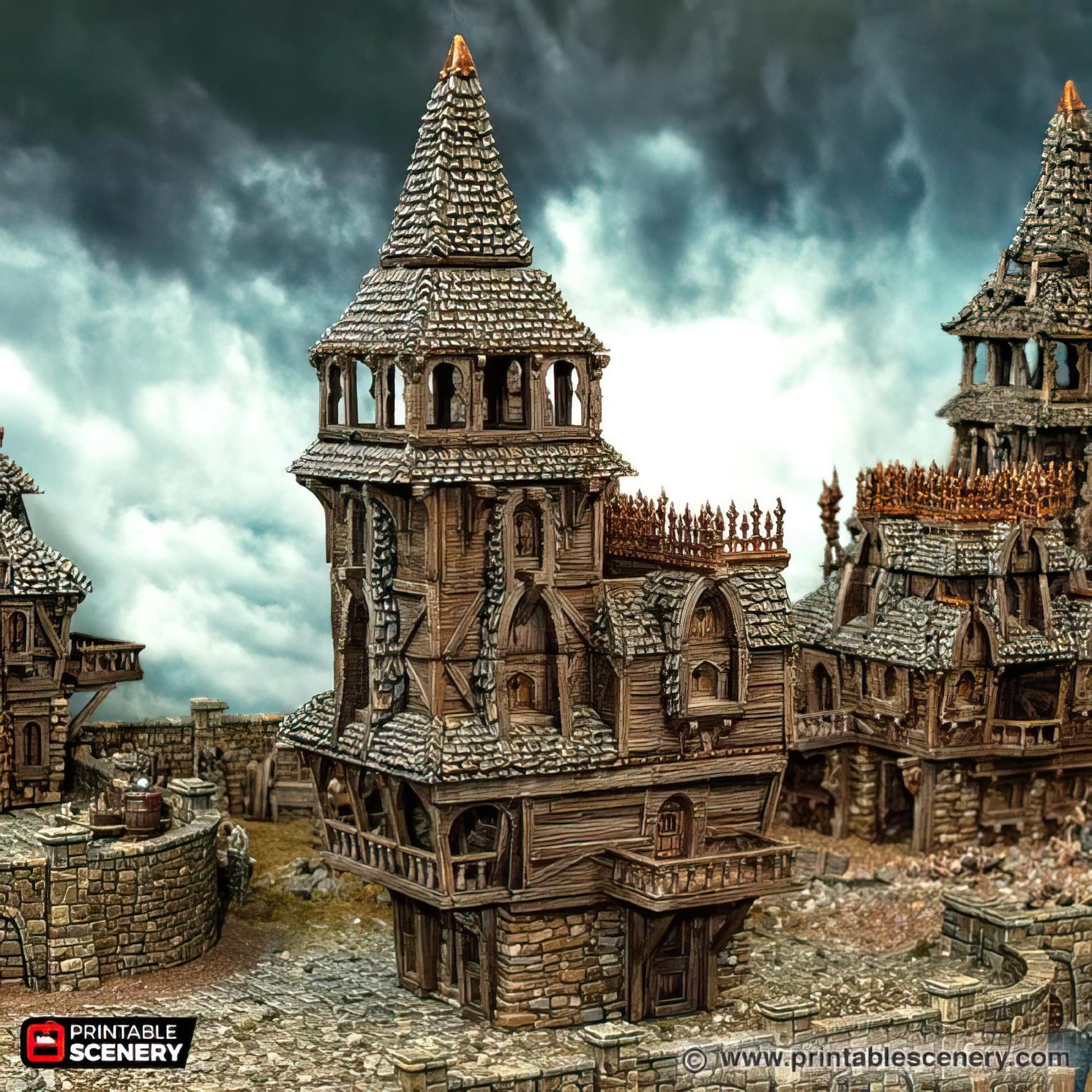 Command the city streets with the City Watch Headquarters, a towering 5-storey building perfect for urban campaigns. This detailed structure features Balconies and removable corbels, adding versatility to your setups, along with a fully detailed interior with working doors. Whether it's for planning tactical encounters, interrogating suspects, or staging rooftop chases, this headquarters is the ideal centrepiece for law enforcement or intrigue-heavy storylines in RPGs and wargames. Bring authority and action to your tabletop with this immersive building.