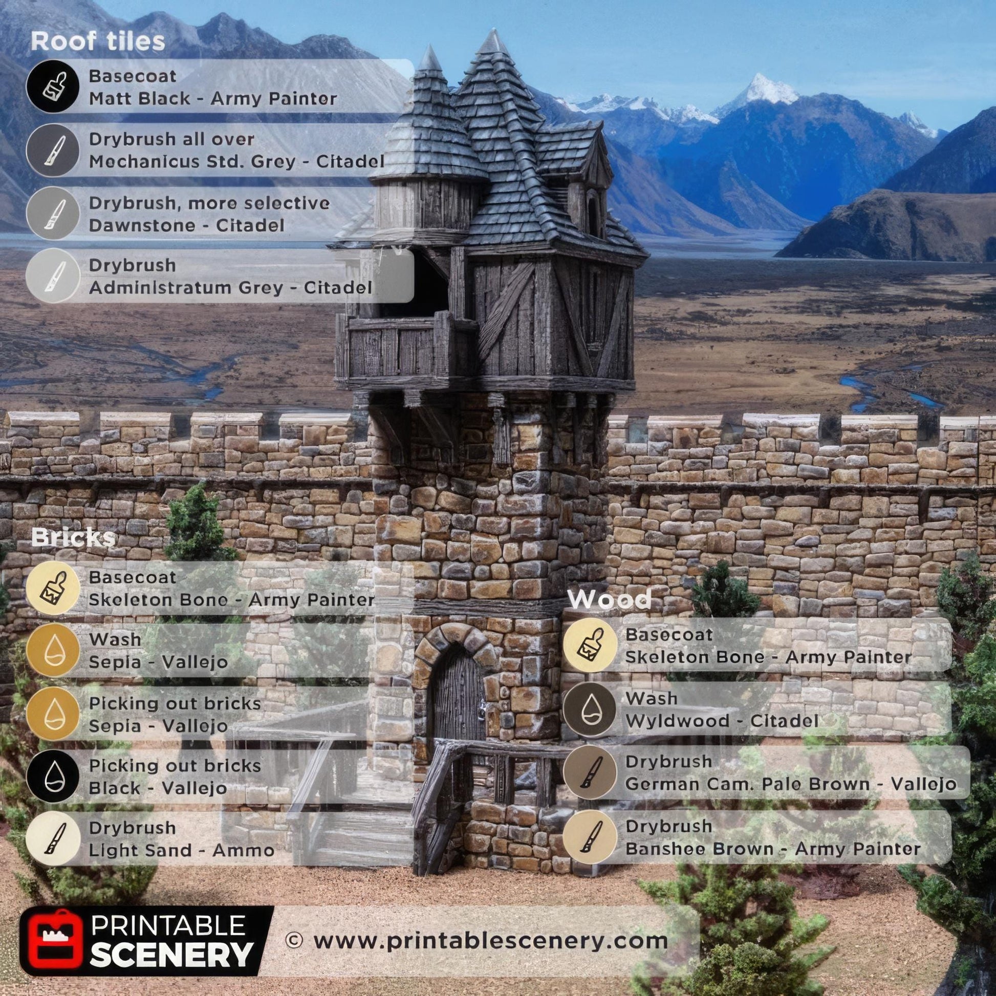 The HEX Castle Millbury Tower is a modular tower designed with a sturdy base, making it perfect as a standalone fortification or as part of a larger castle complex. Its height can be customized by stacking levels, and it includes connectors for attaching to HEX Castle Walls. Fully compatible with SystemHEX plugs, corbels, and buttresses, the Millbury Tower adds variety and strength to your fantasy or historical fortress builds.