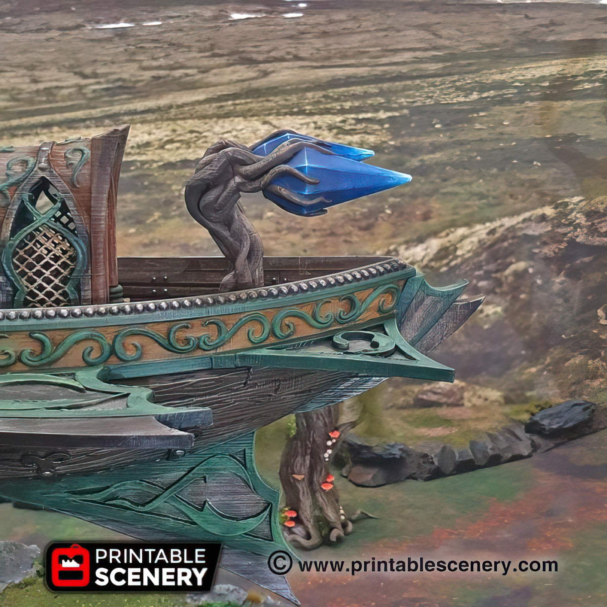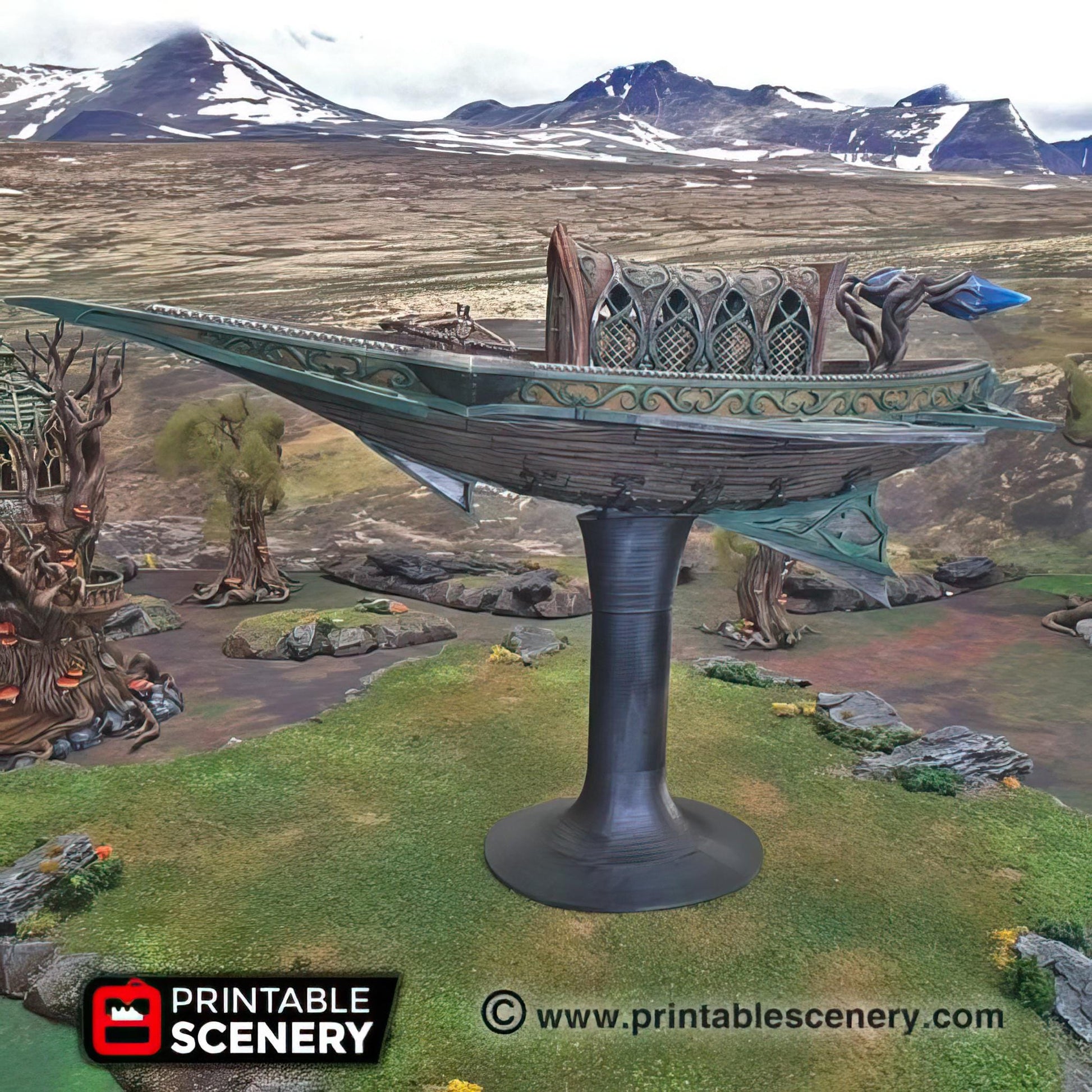 The Sky Reaver is an intricately crafted fantasy flying ship, perfect for tabletop and role-playing games. Designed with immersive details, it includes a stand compatible in height for seamless docking with the Ithillian Sky Port, offering dynamic gameplay possibilities in aerial and steampunk-inspired settings.