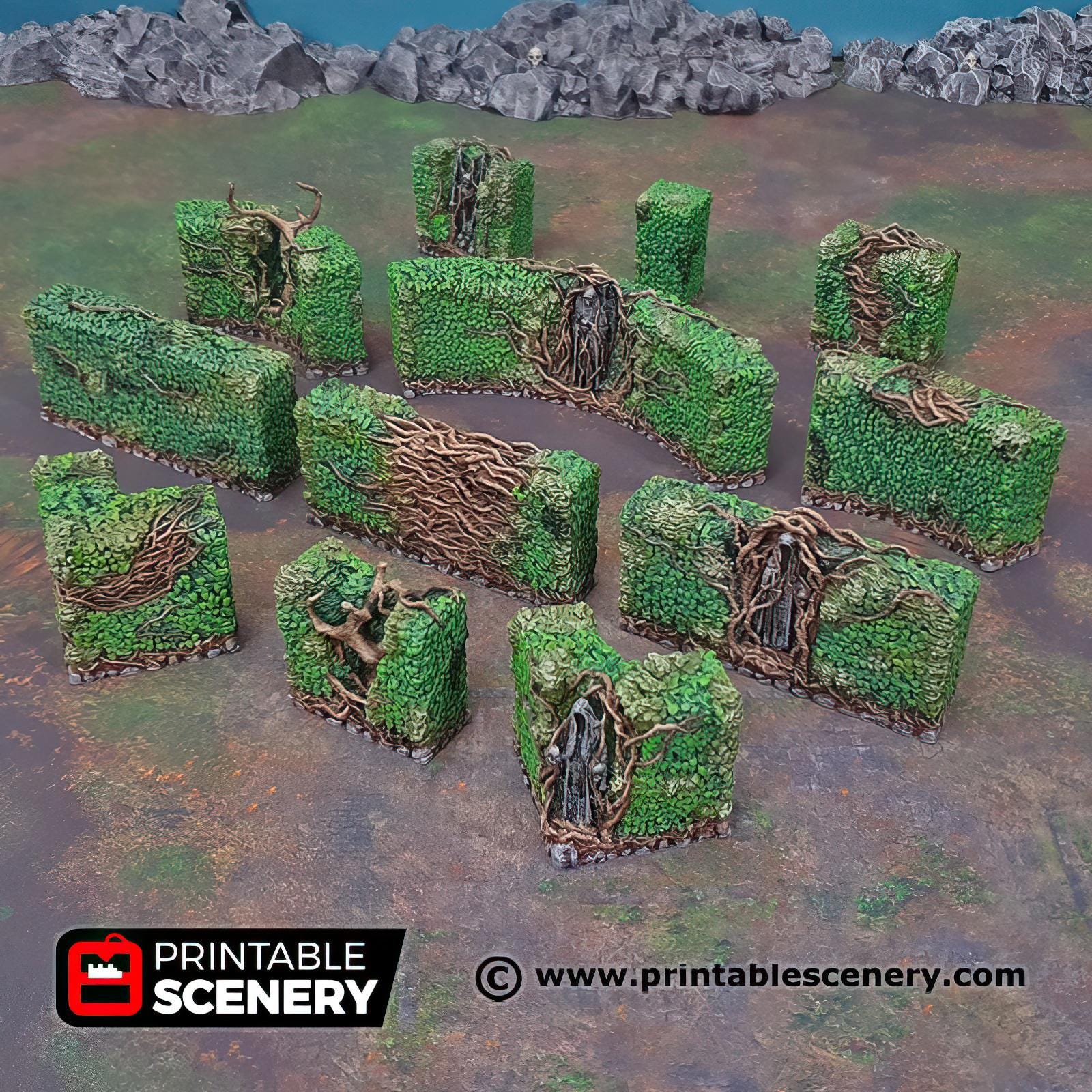 Enhance your tabletop adventures with this set of 24 modular hedge maze terrain pieces! Designed to create a realistic and immersive landscape, each piece features detailed leaves, branches and ominous statues. These modular pieces can be arranged in various configurations to suit your campaign, whether it's for RPGs, wargaming, or dioramas. Ideal for adding depth and realism to your tabletop scenery, this set is a must-have for any serious gamer or collector.
