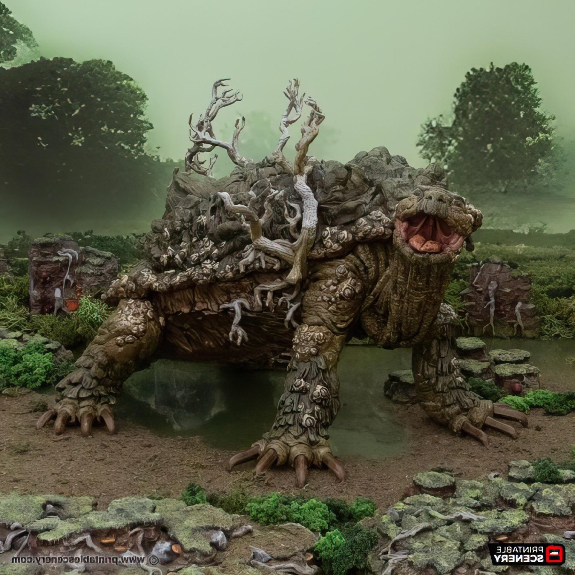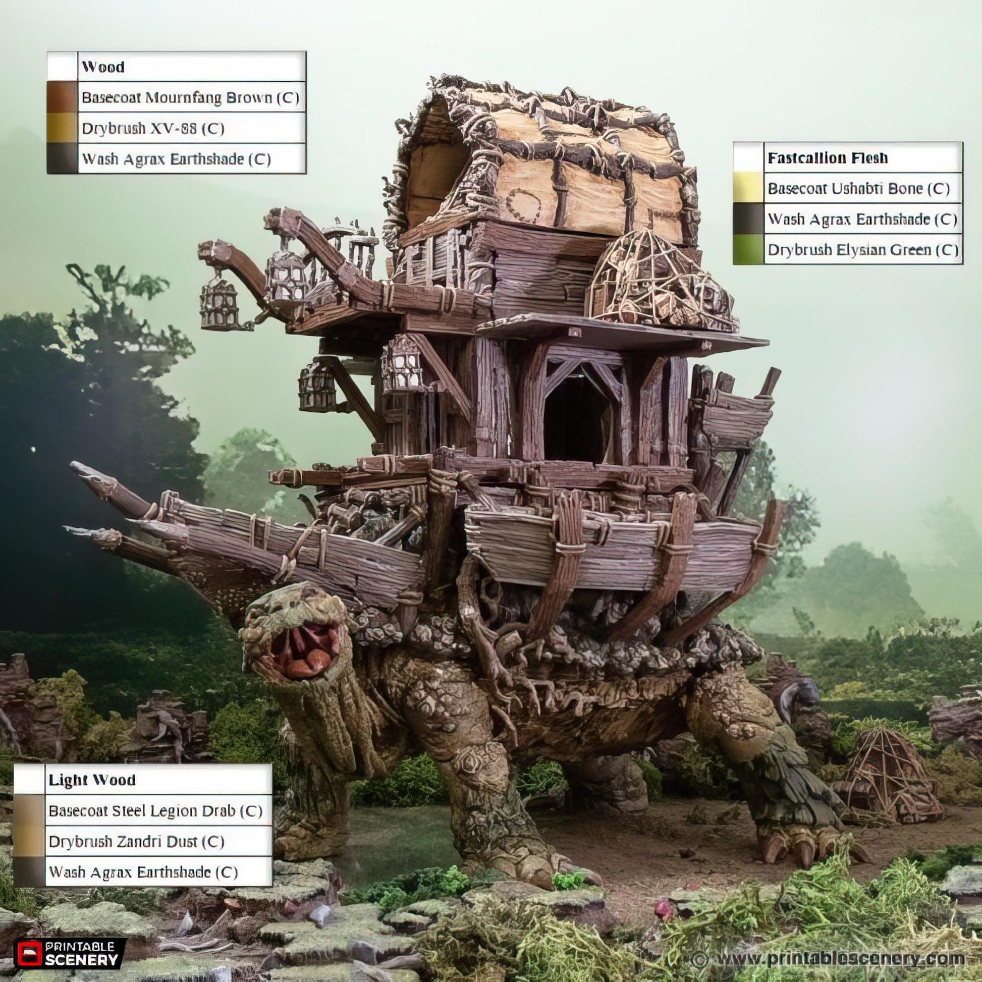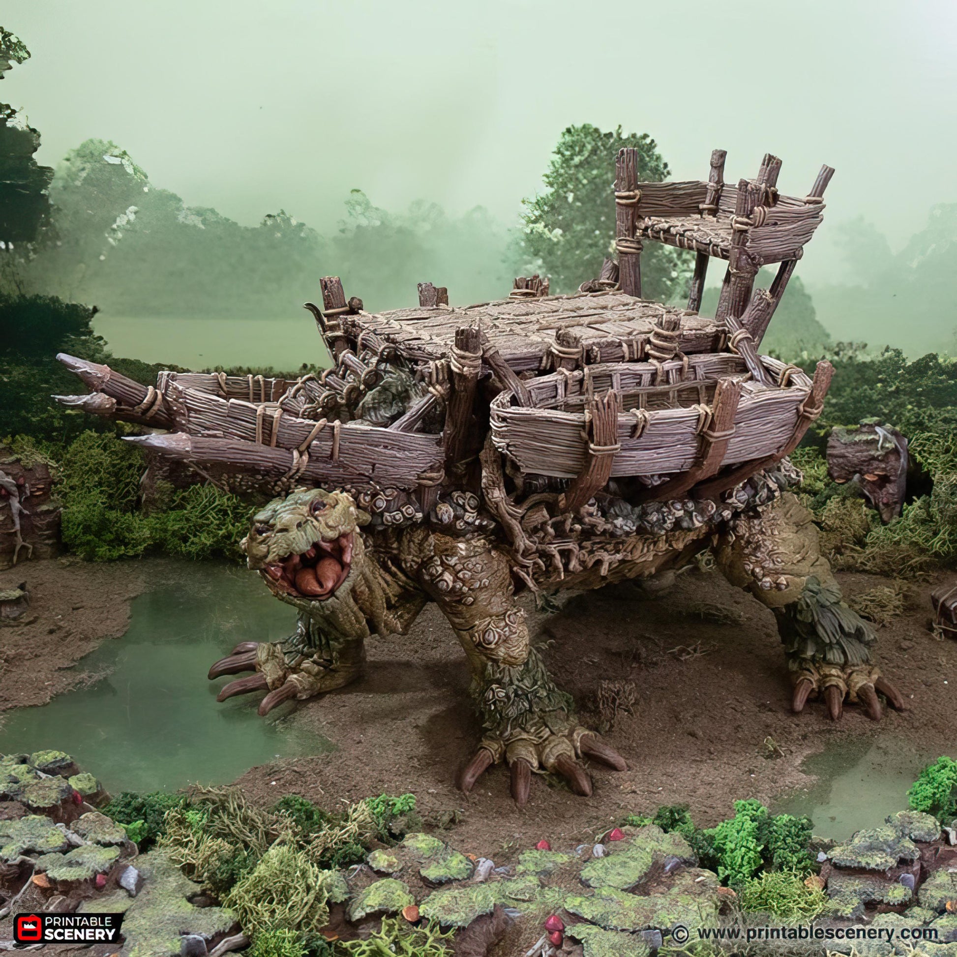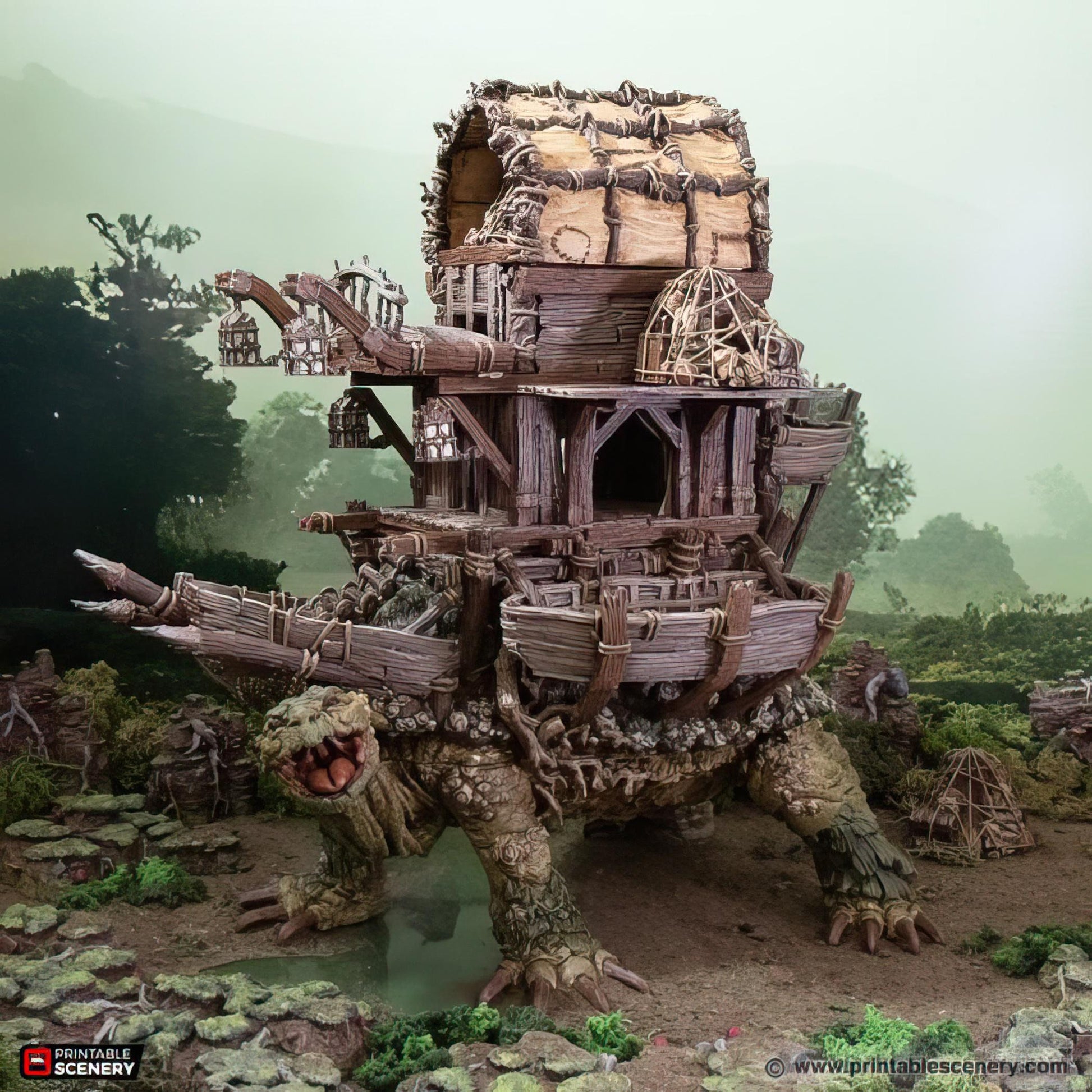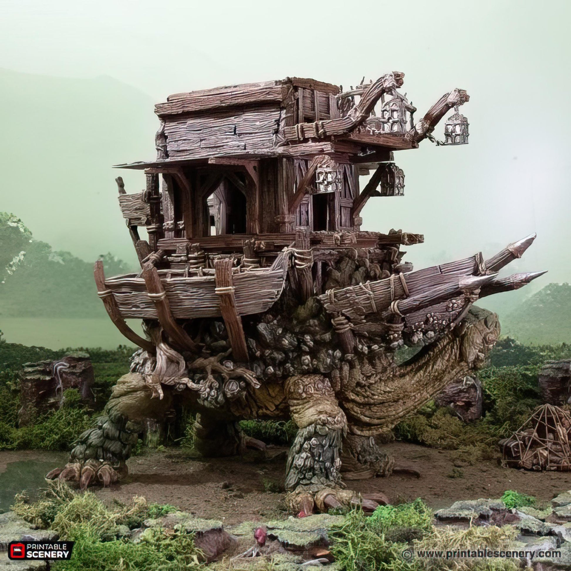 Unleash the power of the Fastcallion and Caravan Expansions, transforming this giant tortoise creature into a formidable mount! Available with just the shell, or the full expansion featuring a massive fort or shop on its back, great for your parties long term mount. The caravan expansion also comes with the shell. For an added twist, each Fastcallion comes with an extra head to create the lurking underwater Fastcallion, perfect for ambushes and hidden threats. This set also includes a 5e monster stat block for epic encounters. Unassembled for easy setup, with some parts requiring gluing. Whether it's a mobile fortress or a traveling merchant's shop, the Fastcallion Caravan Expansion brings unforgettable storytelling potential to your tabletop!