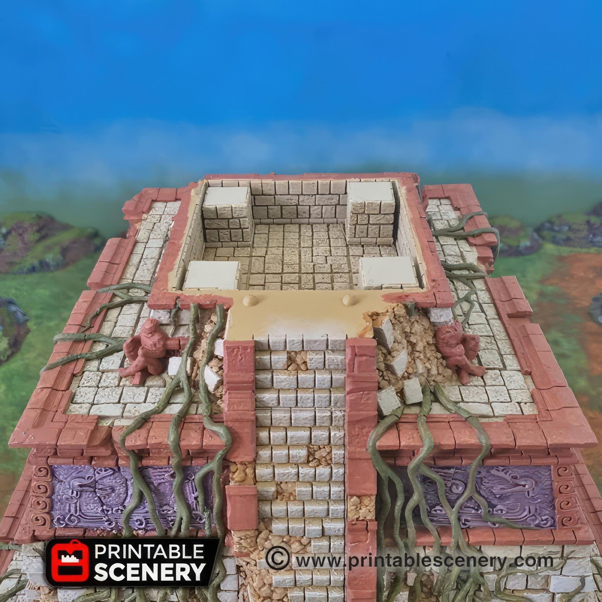 The Pyramid of K’aas is a multi-part pyramid from the Prison of K’aas, a 5th Edition adventure module. This intricate terrain piece features multiple removable levels, movable internal columns, adjustable walls, and hidden entrances, offering unparalleled versatility for your campaigns.
