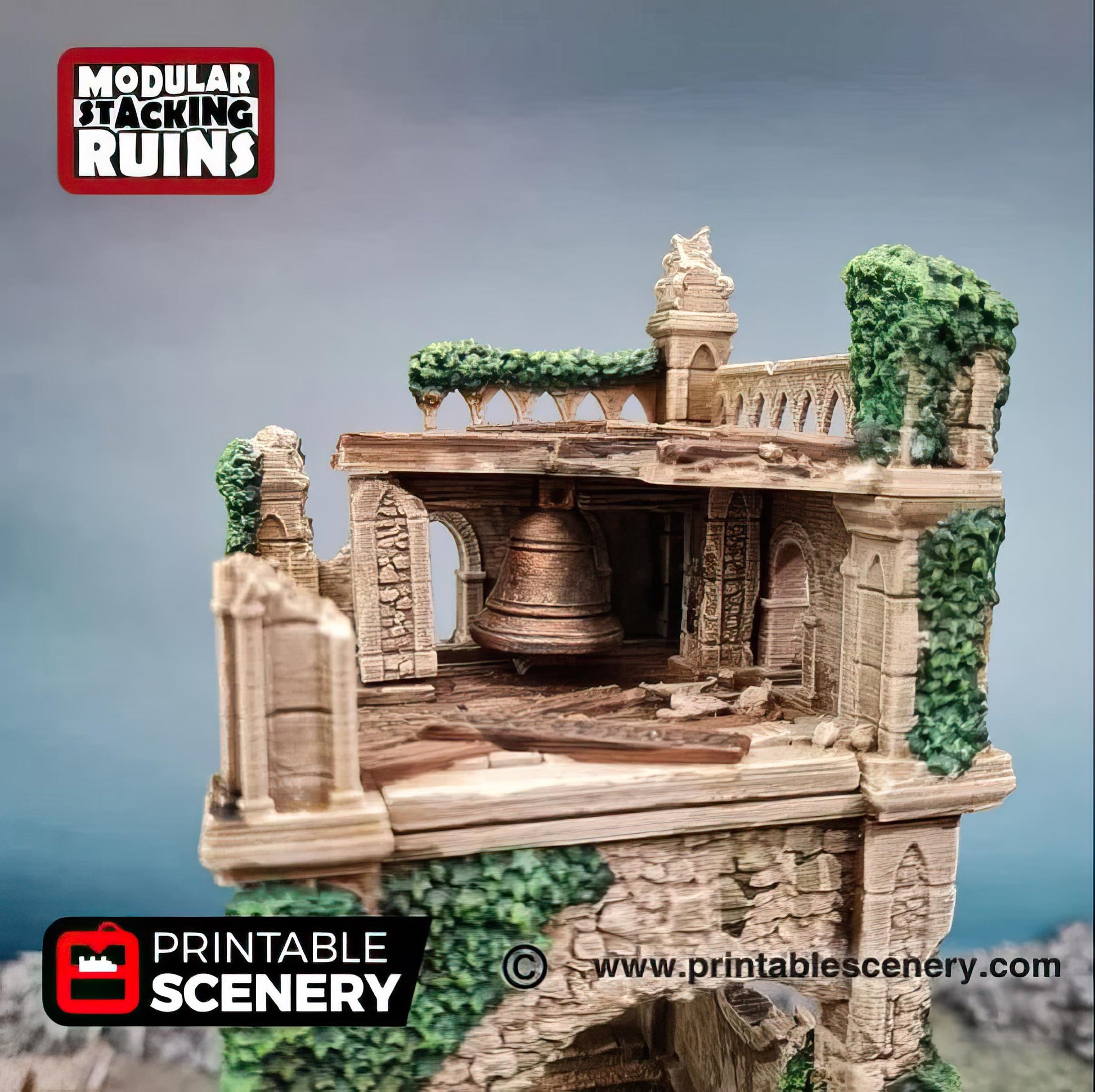 Elevate your tabletop gaming experience with this impressive 10-piece, 4-tiered Church Bell Tower! Perfect for RPGs, wargames, or dioramas, this highly detailed structure features intricate stonework, weathered textures, and an imposing tower that adds grandeur to any fantasy or historical setting. The modular design allows you to assemble and disassemble the tower in different configurations, making it a versatile centrepiece for your campaigns. Whether standing tall as a place of worship or as a crumbling ruin, this bell tower brings a majestic atmosphere to your tabletop scenes.