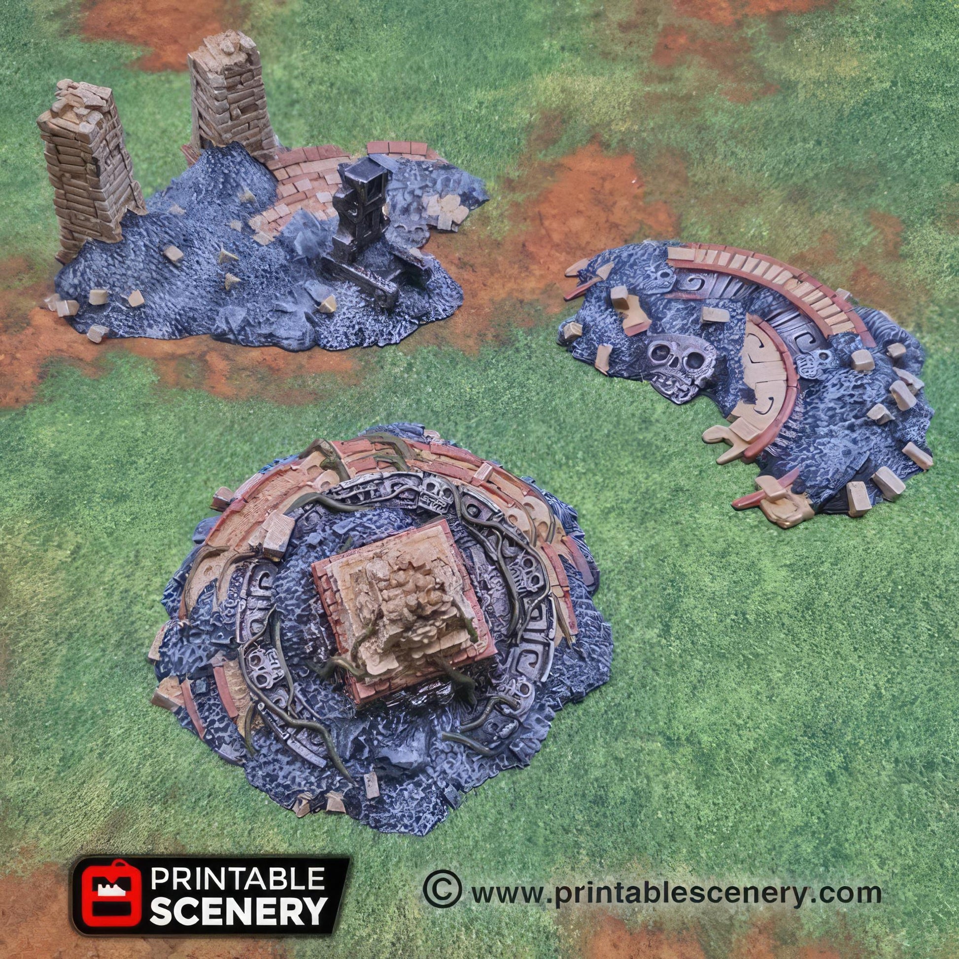 The Eden Scatter Ruins set includes 10 intricately designed ruin pieces of varying sizes, perfect for use as scatter terrain in sci-fi or fantasy tabletop and role-playing games. These pieces add depth and variety to your battlefields, creating immersive environments for your adventures.