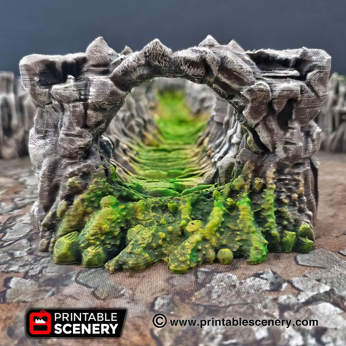 Enhance your tabletop gaming experience with this 11-piece Wyrm Tunnel Dungeon set! Featuring dark, winding tunnels with glistening slime details, hinting at the creatures lurking within. The versatile design allows you to arrange them in various configurations to suit your campaign’s needs. Whether you're exploring underground caverns or a monster's lair, these tunnels will bring depth and atmosphere to your gaming experience.