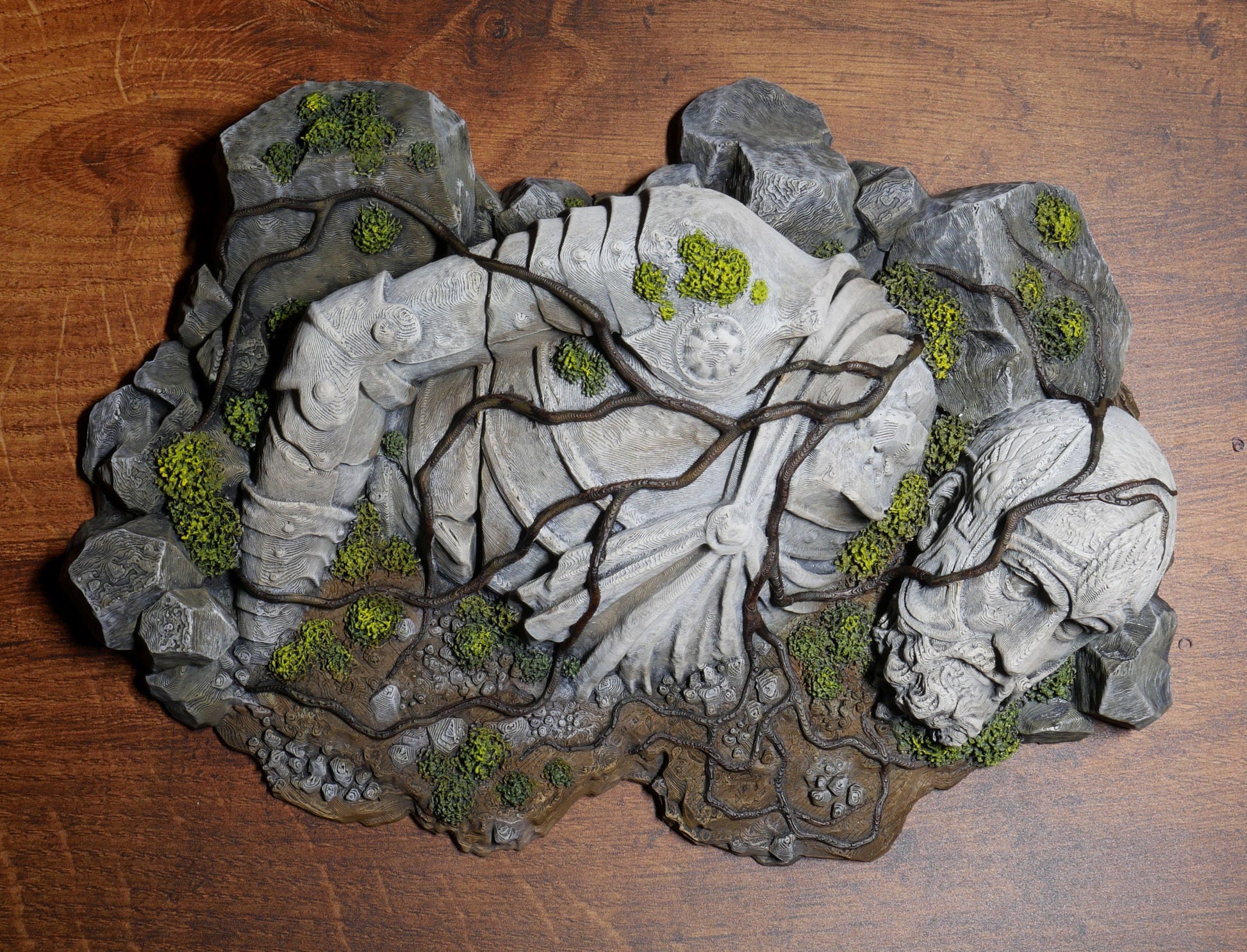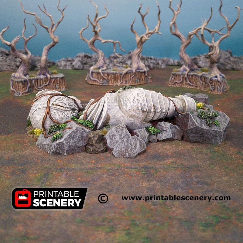 Behold the Giant Statue: A fallen God perhaps, adorned with intricate details and winding roots embracing its ruined form. The immaculate craftsmanship makes it perfect for gaming nights or as a decorative masterpiece. Elevate your tabletop experience with the Giant Statue.